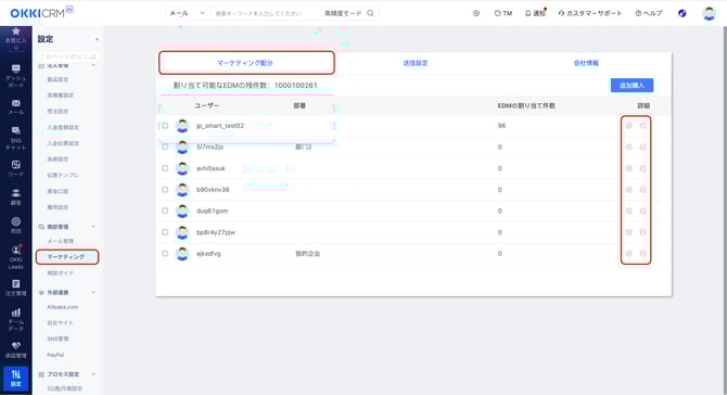 マーケティング配分の項目では、それぞれのサブアカウントに対して、配信可能なEDM数を割り当てることができます。