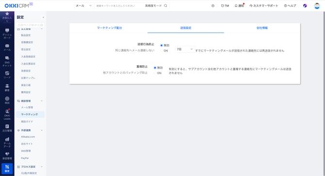 この設定を有効にすると、サブアカウントを含む他のアカウントと連絡先が重複している場合、マーケティングメールは送信されません。