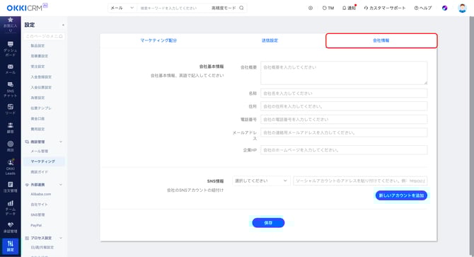 会社情報登録ページに会社情報を登録しておくと、OKKI CRMが登録した情報に基づいて、顧客を推薦をしてくれます。