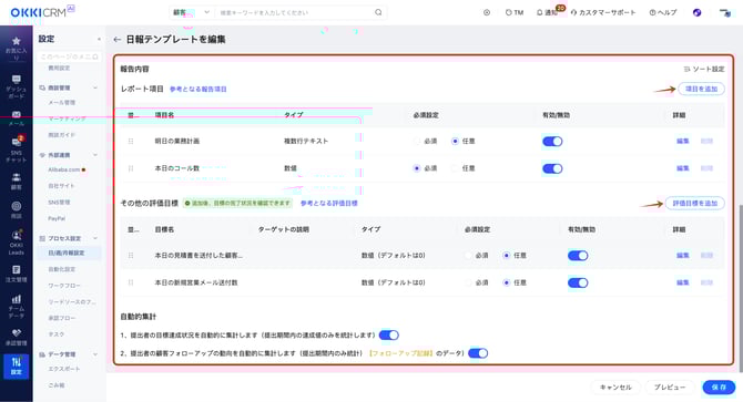 報告内容:レポート項目として「その他評価目標」を設定可能