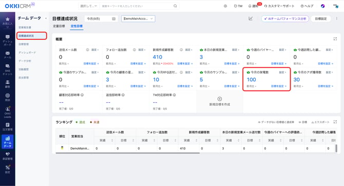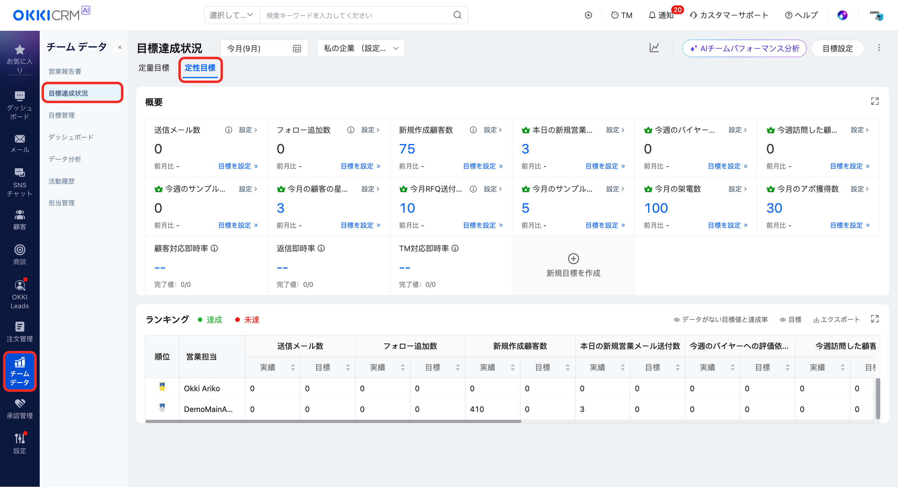「その他評価目標」に設定した内容は、自動的に「行動目標」として保存され、「目標達成状況」一覧から結果を確認できます。