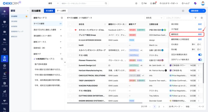 顧客設定では「顧客ステータス」の管理に加えて、OKKI CRMでは特定の条件(※1)を満たした顧客を、担当顧客リストから潜在顧客リストへ自動的に移行するルールを設定することも可能です。