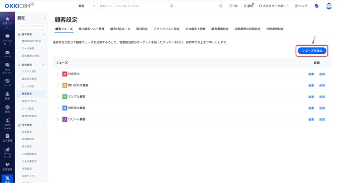 「フェーズを追加」をクリックしたら、新規フェーズを追加できます。