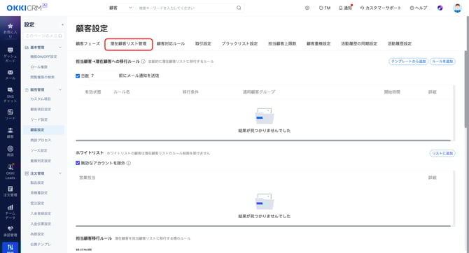 潜在顧客リスト管理では、担当顧客リストから潜在顧客リストへ顧客を移行する際のルールを設定できます。