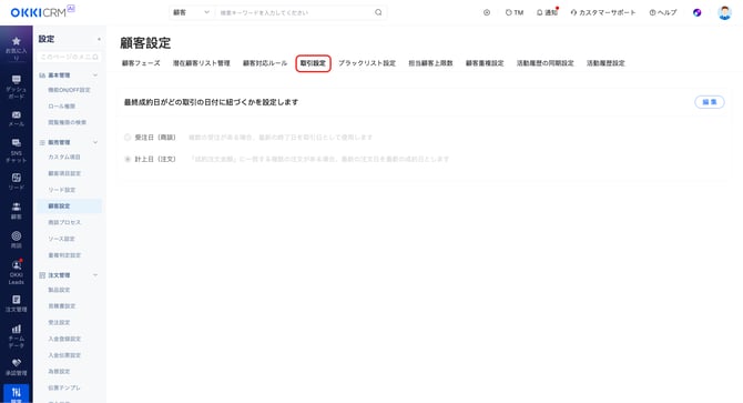 取引設定では、「直近の取引日」の基準となるイベントを設定できます。