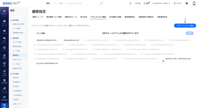 ブラックリスト設定では、連絡先として作成しないメールアドレスを指定することで、登録を防ぐことができます。