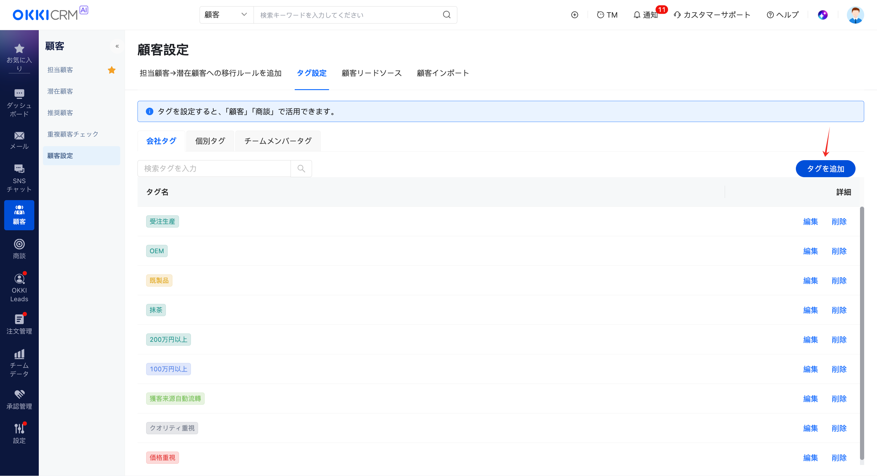 顧客の特徴に応じて、適切なタグを設定しましょう。