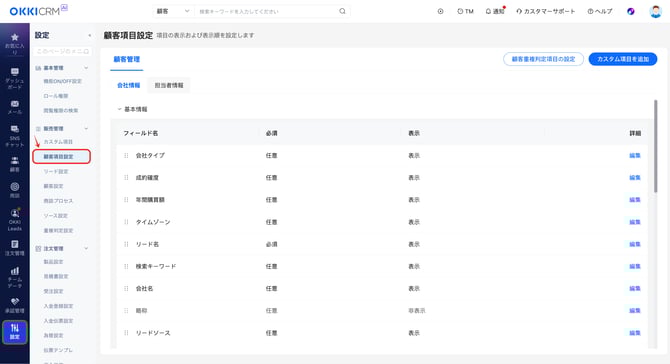 業務に必要な項目がデフォルトにない場合、独自のカスタム項目を追加することもできます。