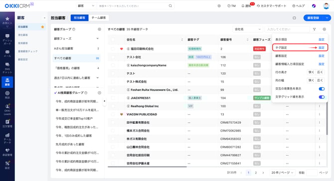 顧客にタグ(ラベル)を付けることで、絞り込み検索やセグメント分析が可能になります。