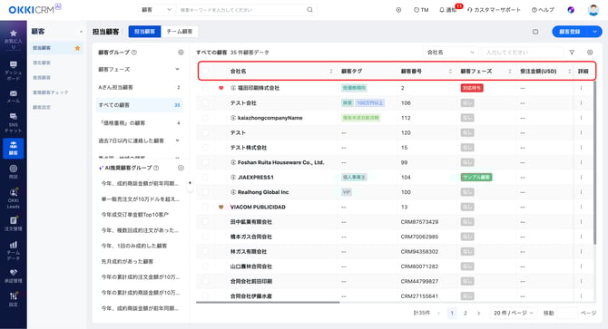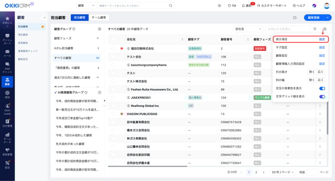 顧客一覧画面(顧客リスト)に表示する項目をカスタマイズできます。